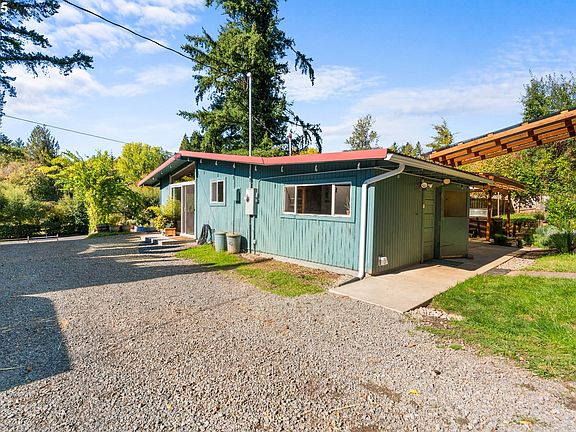 Opportunity knocks with this beautifully maintained mid-century home on a serene 1.55-acre cleared lot, both flat and gently sloping, set back from the road for added privacy. Inside, you’ll find three comfortable bedrooms, vaulted open-beam ceilings, vinyl windows, and a warm, functional layout filled with natural light.Recent updates include a new wood stove (with over 3 cords of firewood included!), new bedroom windows and slider, interior paint, modern lighting and wiring including in the detached garage, and custom window shades throughout. The home also features upgraded electrical and plumbing, a new septic system and well holding tank, and new gutters with copper rain chains. Step outside to enjoy a brand-new covered back patio and rock wall, plus a concrete side patio, ideal for morning coffee and bird watching. The fully fenced and cross-fenced property includes a new gravel driveway and parking pad, raised garden beds, and fruit trees — plum, apple, cherry, fig, chestnut, and grape vines — perfect for the homesteader or hobby gardener. The detached garage with a concrete floor and 220-power adds versatile workspace potential. This peaceful area is surrounded by high-end custom homes, offering room to expand or build your dream addition. Don’t miss the level building site at the back of the property, perfect for gardening, farming, or housing animals.