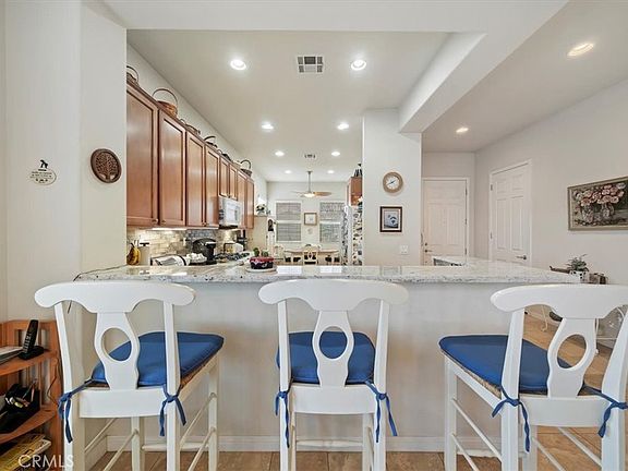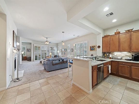 This home has everything you need to enjoy within a well-maintained, gated, Senior community with countless activities and events to participate in or relax and enjoy the peaceful comforts of being home! Enjoy entering this beautiful home with an open floor plan featuring spacious rooms and an updated kitchen equipped with newer granite countertops, full backsplash, abundant cabinetry with pull-out drawers, pantry, a dining area with a view, and a large bar counter providing additional space for entertaining. Additional features include lovely plantation shutters, recessed lighting, ceiling fans, a beautiful fireplace, and an indoor laundry room with wash basin and ample storage cabinets. The primary bathroom offers a walk-in closet, walk-in shower, and a dressing area with generous counter space, double sinks, and lighting options.
