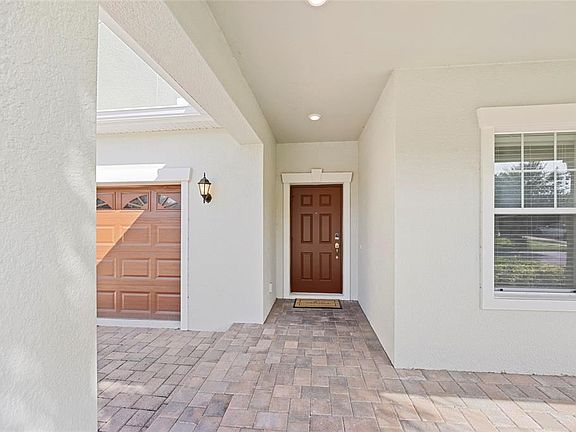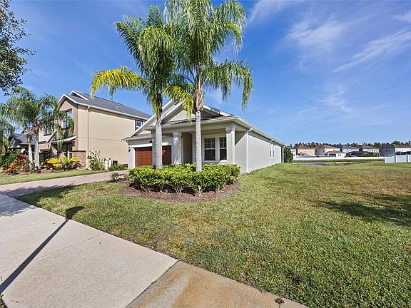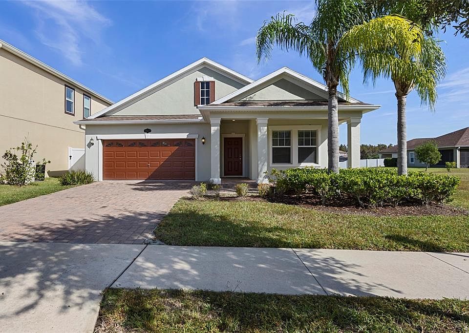 Welcome home! This charming 3-bedroom, 2-bathroom residence offers just under 2,000 square feet of beautifully designed living space. From the moment you arrive, you’ll fall in love with the charming covered front porch, paver driveway and walkway, and the lush, tree-lined surroundings that make Heron Preserve so special. Step inside to discover a bright, open layout that perfectly balances style and comfort. Elegant crown molding in the foyer and main living areas adds a refined touch, while a flex room off the entry welcomes abundant natural light through large front windows-the perfect spot for a home office, reading nook, or formal sitting area. The heart of the home features an open-concept layout with the kitchen, dining, and living areas flowing seamlessly together — ideal for both everyday living and entertaining. The spacious kitchen island provides plenty of prep and gathering space, while granite countertops add timeless appeal in both the kitchen and bathrooms. The spacious living room opens to a covered, screened-in lanai overlooking a peaceful pond, offering the perfect spot for your morning coffee or evening unwind. With its split floor plan, the home provides privacy and comfort for everyone-two bedrooms and a full bath down one hallway, while the serene primary suite tucked quietly at the rear with its tranquil pond view. The primary walk-in closet is impressively spacious, providing ample room for organization. The primary bathroom features granite countertops with double sinks, a separate shower, and a relaxing garden tub — a perfect retreat after a long day. NEW INTERIOR PAINT (11/2025) and NEWER EXTERIOR PAINT (2024) make this home completely move-in ready, just in time to celebrate the holidays in your new space. Beyond your front door, life in the gated Heron Preserve at K-Bar Ranch means enjoying the best of Florida living with tree-lined conservation areas, private mailboxes, a dog park, and a playground right within the neighborhood. Residents also have access to K-Bar Ranch’s resort-style amenities, including a sparkling pool, multiple playgrounds, tennis court, and basketball court-all surrounded by natural beauty and a strong sense of community. Come experience the peaceful charm and community feel of Heron Preserve-where every day feels like a getaway.