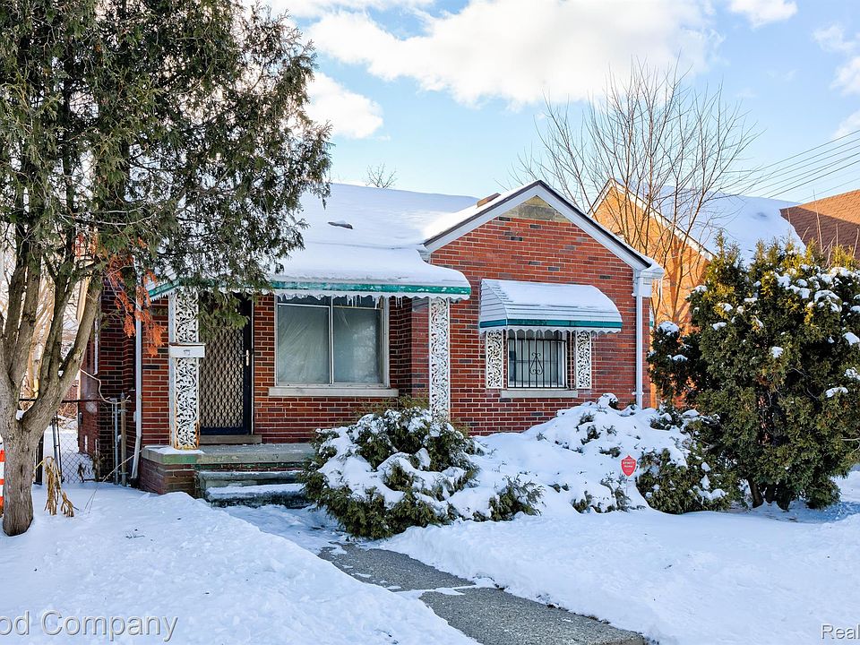 This brick ranch in Detroit is full of potential and ready for your vision. Featuring classic hardwood floors and charming coved ceilings, this home offers a solid foundation to make it your own. The spacious kitchen provides plenty of room for updates, while the stylish retro tile bath adds a touch of vintage charm. Three bedrooms offer comfortable living space, and the partially finished basement includes laundry and extra storage. Enjoy relaxing on the covered front porch, and take advantage of the detached garage for parking or additional storage. A great opportunity in a convenient location—don't miss out! Welcome Home!