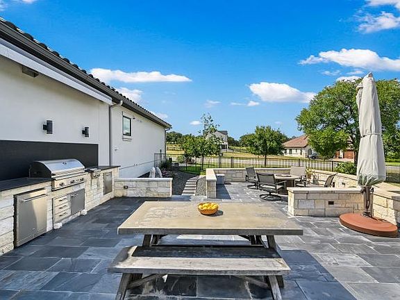 Custom built lock-n-leave home, situated on 2 lots, in the newer gated community of The Enclave at Barton Creek Lakeside. This small intimate community is situated on 10 acres with 40 home sites, and is tucked in between both gated entrances of Barton Creek Lakeside. Built by one of the finest builders in the area, Toscana Homes and Properties, the attention to detail exudes with quality features and appliances throughout. This community was designed with 6 original floorplans to choose from with high quality finishes and a spray foam insulation for a sealed envelope efficiency. This home is unique in that it is on 2 lots, allowing for a side yard with an outdoor kitchen, firepit, retractable awnings, and a stone patio space, perfect for outdoor entertaining or just enjoying the outdoors. Inside you will find high end Wolf appliances, a Miele built in coffee maker, Sub-Zero refrigerator, brand new water softener and reverse osmosis system, security camera system inside and out, central vacuum system, sound system throughout, and a climate-controlled wine room with a beautiful iron door entry. Primary suite includes a large walk-in shower, heated towel racks and 2 separate sinks. Front guest room has an un-suite with a steam shower. Office area is located near the primary bedroom. No carpet, tile and wood floors that are easy to maintain. Washer, dryer, laundry room refrigerator, sound system and cameras all convey. Some furniture is negotiable. Monthly dues cover high speed internet, trash service, lawn care, as well as gate and common area maintenance. Perfect lock-n-leave or full-time residence. Accessing the private country club of Barton Creek Lakeside, is a breeze, with a private golf cart path, directly to the club. Membership is voluntary but well worth having. Full golf membership includes an 18-hole Arnold Palmer designed golf course, private club w/ dining, pool, fitness center, and tennis/pickle ball courts. Hard to find this quality in this price range!