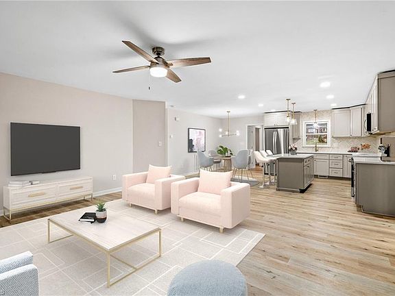 Say hello to this updated & beautiful one level living home right outside of town so lower taxes but just 2 miles from interstate!! LOCATION...Home is located at the end of a dead end street! Master bathroom of your DREAMS with oversized tiled shower, soaker tub, separate toilet closet and large walk-in closet! New cabinetry with trash pull, quartz countertops & beautiful tile backsplash. Brand new refrigerator, dishwasher, range & microwave that all come with the home! NO CARPET so put your vacuum away! LARGE backyard with oversized concrete patio for entertaining and all outside fun & of course the playhouse or storage building whatever use is needed! All interior has been freshly painted plus all new light fixtures. Home has been digitally staged to show potential. Glass panel for shower will be installed before closing. Agents: Please read private remarks.