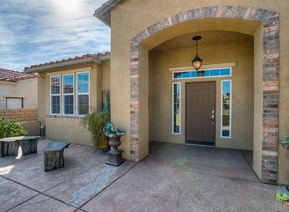 Beautiful Four Seasons (Popular Canyon 1 with Office option)! Second owner and highly upgraded! Custom furnished by Ethan Allen, Window blinds, indoor/outdoor sound system, ceiling fans in all rooms and two on the patio, upgraded title, upgraded insulation, upgraded lighting, solid core doors thru-out, upgraded cabinets, granite, shower glass, stainless profile appliances, upgraded HVAC and filtration system, exterior lighting + irrigation, lux outdoor hot tub & Prof BBQ included! Garage has storage, work bench and custom ceiling racks! Amazing custom water feature on private patio. This is the one!