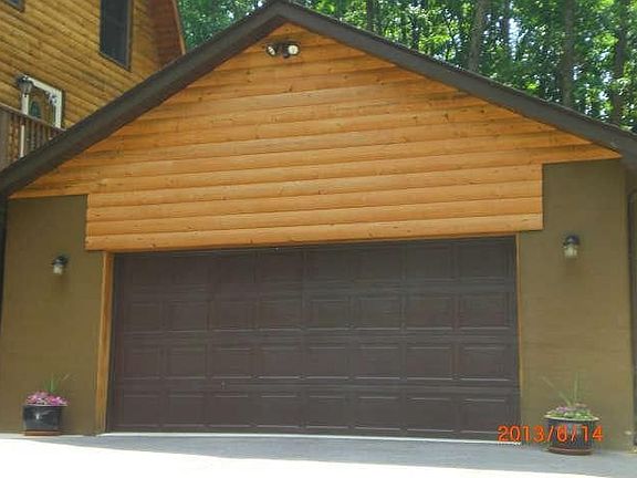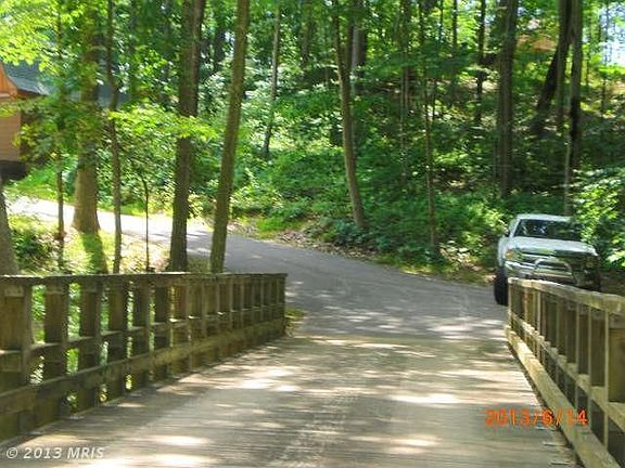Cross the bridge & enter into your own paradise! Custom built unique log home on gorgeous 4.89 wooded AC Sit on the wrap around porch or down by the stream to listen & watch the wildlife. Entertain on the enormous wrap around deck. Grand Family rm w/woodstove, LR w/fireplace, Wood flrs thru-out most of home, Exposed logs, Kit w/granite, stainless steal appliances, New 50yr roof, paved driveway.