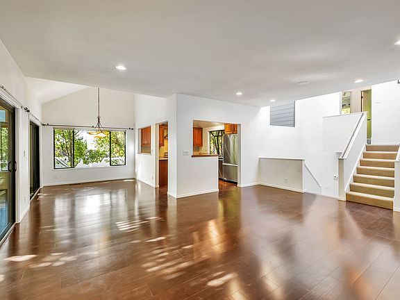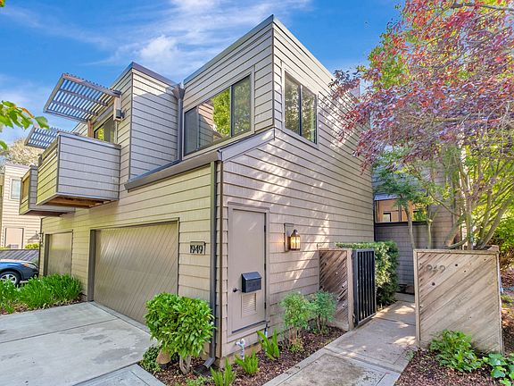 End unit with stunning views of the hill and trees. Features include a top-floor primary suite with vaulted ceilings, two bedrooms and full bath on the second floor, skylight over stairs and entry, and an updated kitchen open to dining and living areas with fireplace. Landscaped ground-level patio. Community amenities: pool, clubhouse, greenbelt, and trail access. Located in the Lafayette School District, near Palos Verdes Shopping Center, and minutes to downtown Walnut Creek and Lafayette. Includes Washer/Dryer and Refrigerator.