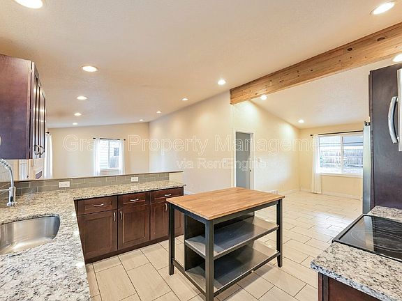 Ample storageStainless steel appliancesCovered patioKitchen with granite countersCenter islandSpacious attached single-car garage