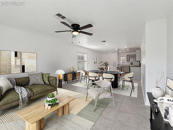 One or more photo(s) has been virtually staged. Discover this spacious, move-in-ready 3-bedroom, 2-bathroom home located in Storey Creek. This residence features a bright, open floorplan highlighted by durable tile flooring throughout the main living areas. The kitchen, boasts an island, stainless steel appliances, warm grey cabinetry, and plenty of counter space. The primary suite offers a large walk-in closet and ensuite with a tile shower. Additional conveniences include two well-appointed guest bedrooms, an interior laundry room, and a 2-car garage. Enjoy a nice sized green space and take advantage of the excellent community amenities including a community pool, clubhouse, playground, fitness center and sports plex with a variety of outdoor courts for basketball, volleyball, soccer field, outdoor gym and tennis courts. This is a superb opportunity in a great location -schedule your tour today!