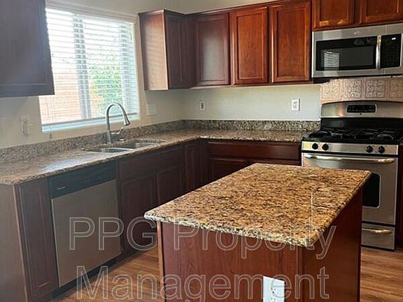 This 4 bedroom 2.5 bath in Festival is ready for early October move in!! This home features brand new lvt flooring downstairs and new carpet up stairs. Also features new interior paint and is on a corner lot. Every room has a ceiling fan to help keep cool. It has a landscape back yard with a covered patio as well. There is a k-8 school in walking distance. its about 10 minutes from the 303 freeway.