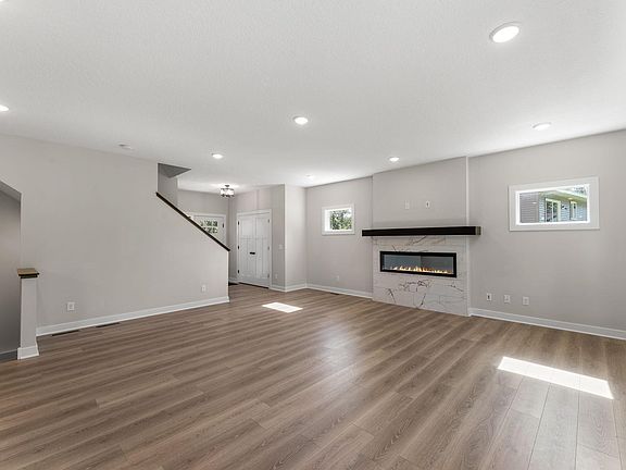 Electric fireplaceSpacious center islandWood laminate flooringStainless steel appliance packageFlexible spaceHalf bathFive generous bedrooms