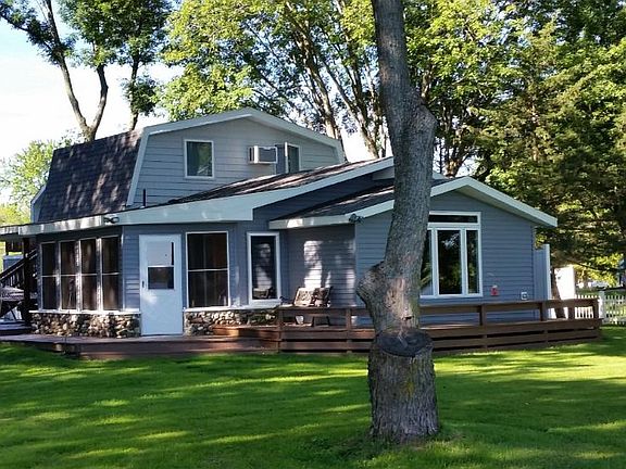 101 ft of lake shore on Two Rivers Lake .52 Acre level lot w/mature trees. Completely remodel lake home awaits! Custom cabinets, built in wine rack, pantry, SS appl, large ctr island w/tons of storage. Dining room over looks lake & lg backyard, gas fireplace in living room w/vaulted beam ceiling. Master bedroom upstairs loft w/double closet. Main flr laundry, full bathroom w/tile shower. Updates included electrical, windows, maint free siding, patio, deck, 3 season screened porch w/knotty pine., Directions W I94 to Avon, R Cty Rd 9 thru town, L St.Anna Dr, R 190th Ave, L Two Rivers Lake to home.