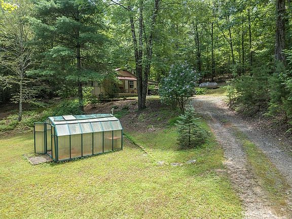 Great little cabin with over 13 acres of unrestricted beautiful and completely usable land in desirable Fannin County just minutes from Blue Ridge GA. This is a real jewel for someone who wants to build their dream home and have nice living quarters while doing so and then using the cabin for rental income later on. Its a 2/1 with neat kitchen, full bath, porch, storage shed, blueberry orchard, greenhouse and so much more. There is a Samsung Mini Split heat pump for heat and a/c and a wood burning stove and gas wall heater for heat if power were to go off. Metal roof, ,private well and in good condition. This is a beautiful property and so private.
