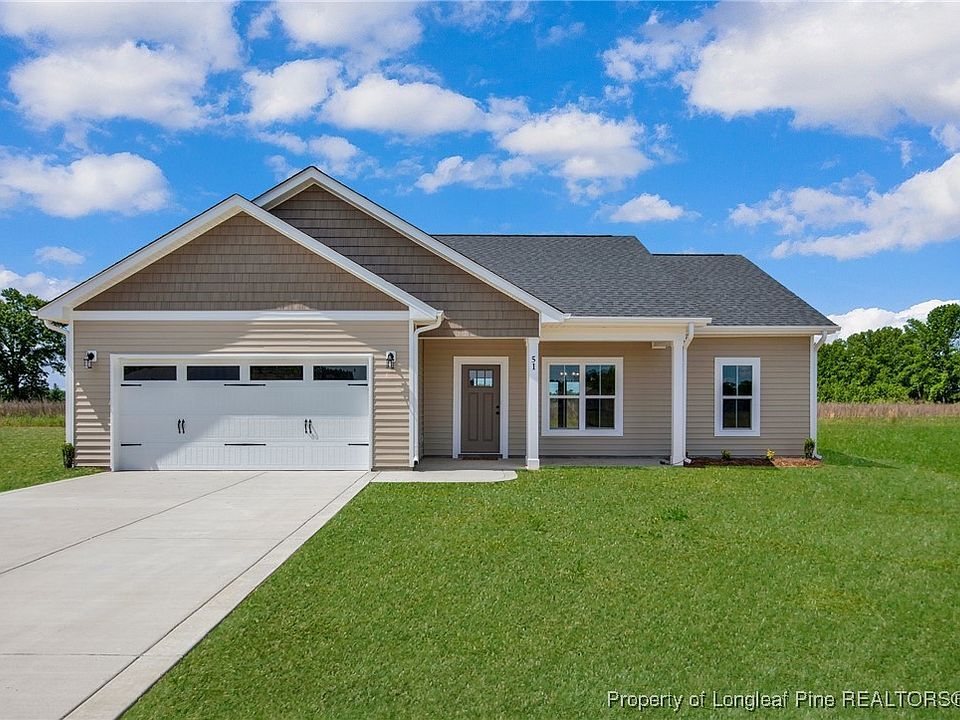 The SEC-1340 Plan by Southeastern Construction offers a thoughtfully designed 3-bedroom, 2 bathroom ranch-style home situated on a spacious half-acre lot. With an open-concept layout, this home features a welcoming covered front porch that leads into a spacious great room, seamlessly connected to the kitchen and dining area—ideal for modern living and entertaining.