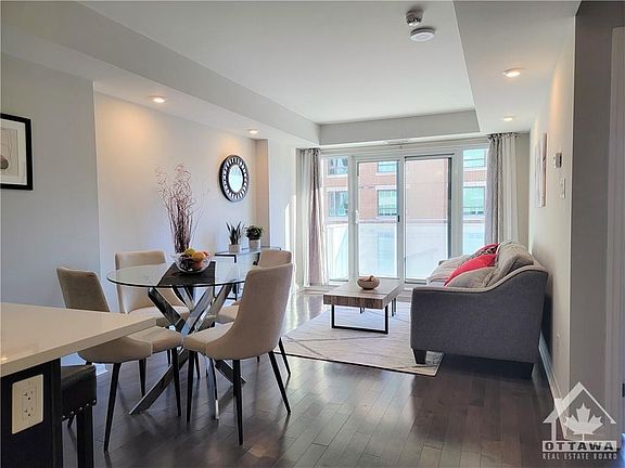 Downtown living in the heart of Ottawa! Enjoy the beautiful views from this open concept 1-bedroom + Den apartment. This spacious 660 sqft unit features bright living area with floor to ceiling windows. Open concept kitchen overlooks spacious living room and dining room, stainless steel appliances , a private balcony , and in unit washer / dryer. Full of amenities, this condo has it all including outdoor BBQ terrace, party room with full kitchen, pool, gym, library. Feel secure with 24-hour security . Just steps away from the Rideau Centre, the University of Ottawa, Parliament Hill, The National Gallery, Byward Market & Rideau Canal.