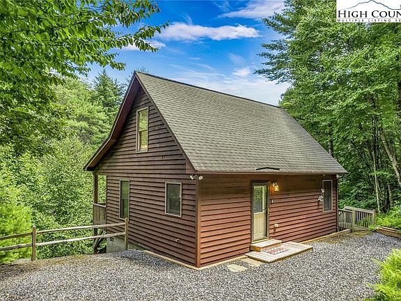 You can check a mountain home off your bucket list with this charming cottage nestled in the woods close to downtown West Jefferson, the New River, and Blue Ridge Parkway. Leave behind the heat and asphalt to live where you can be surrounded by Mother Nature. This getaway offers peace and solitude tucked away in a private setting where you can enjoy the vibrant and subtle hues of the mountain skies and foliage, plus hear all the harmonies of nature. Inside you'll feel a cabin vibe with tongue & grove ceilings and hard wood floors throughout. The soaring ceilings let the natural light flow throughout and show off the warm wood hues. Walk in to the great room featuring the kitchen, dining, and living room. Also, on the main level is a full bath and a spacious primary bedroom where the laundry closet is located. On the second level, a large loft bedroom for your guests to enjoy visiting your mountain retreat. From the covered porch you can watch nature unfold and dance in front of you while you rock your cares away. Follow the steps to the mountain stream where you can dip your toes for a crisp and refreshing experience. This property has a spacious lower yard waiting for a fire pit and your fur babies to run and play. Make the High Country your home away from home where you can enjoy hiking, tubing, fishing, dining, breweries, art galleries, antiques, and shopping. There is a newly added New River State park with river access before you cross the river bridge and turn onto Bare Hollow Rd. This added river access within a mile of the home.
