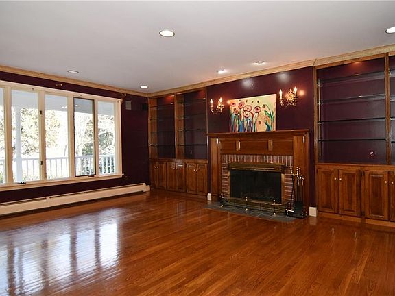 Immediate occupancy. Signal Ridge at its best. Top location in East Greenwich. Large Moorehead Colonial. 4,680 sq.ft. total. 3 car Garage with storage cabinets. Center hall. Master suite addition in 1996 with fireplace, custom built-ins, lighting, bath with whirlpool/shower/double sinks, dressing room or office. 4 bedrooms total. 4 baths, hardwood flooring throughout. Kitchen updated with quartz counters/backsplash and stainless appliances and subzero type refrigerator. Rear of home has large tiled sunroom with wet bar and 2 wine refrigerators added in 1996. Laundry room on first floor with entrance to outside for kids to drop laundry and go. Living room is front to back of home with fireplace and beautiful custom woodwork. Large family room with fireplace and custom bookcases and cupboards. Formal large dining room.3 Fireplaces total. Lower level has heated gym with ballet bars/mirrors, full bath/shower, large playroom, storage area with bulkhead. Walk in cedar closet. Full house generator (Generac), central air, sprinklers. Front porch. Beautiful gardens and landscaping. Lot 1.02 acres. Sprinklers. No wetlands on this wooded lot . Easy access to Route 94 & 4. Historic Main Street district/waterfront restaurants a short ride away. Airport 10 minutes away. One of RI's top school districts. Can also be rented for 6,000 monthly with year lease. Easy show.