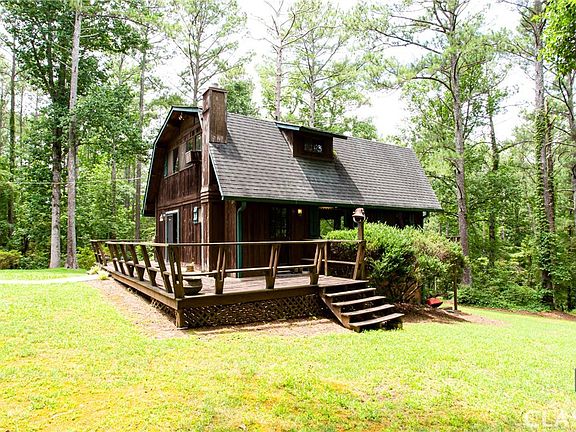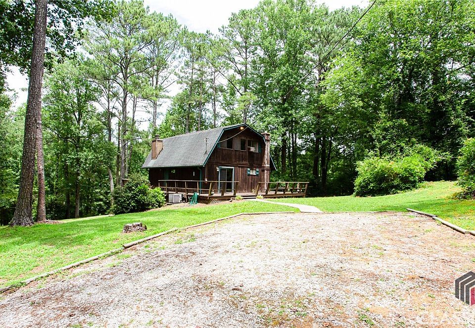Private Getaway outside of Covington, yet close to grocery, shopping, and more.  Set down a private wooded lane, this 3/2 cabin is on a wooded 9.16 acres w/stocked pond, walking trails, 4 stall barn, and room to roam. Property has been used as a private retreat from Atlanta.  Inside features include tongue and groove, lots of windows with views on all sides, kitchen opens to den area and has lots of cabinets for storage, Fireplace has a Heatolater insert, wrap around upper and lower decks, small dock at pond, 2 bedrooms and bath upstairs, 1 full bath on main level, 1 bedroom and unfin. area for storage or workshop in basement .  Property is ready for new owners to make it their own cozy spot.