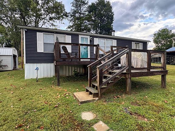 Amazing opportunity for someone looking for a true turn key lake property ! This 3 bedroom home on Rough River Lake sits on 3 very nice lots. It has recently been remodeled with many updates including new plumbing, HVAC, SS kitchen appliances and waterproof vinyl laminate flooring. Home is fully furnished including 3 bedroom suites, living room furniture, kitchen table, bar stools, washer, dryer, ring security camera system and two TV's. Front deck with a gas grill and an open top pergola with a fire pit and hammocks. There is even a large storage building that comes with a riding lawnmower and a Club Car 6 pack golf cart. The property has an assigned boat slip thats only a 3-4 minute golf cart ride away with a new dock and also includes a Sun Tracker 22' party barge boat with an inboard motor. This truly turn key property that needs nothing and best of all it is priced to sell, call today for your private tour.