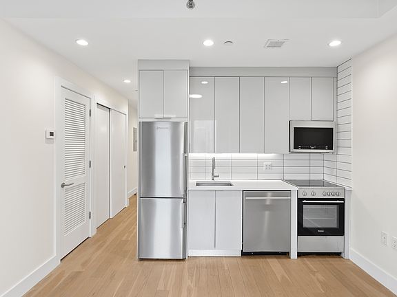 *Apartment Details:* - In unit washer and dryer - Solar window treatments in the living room - Blackout shades in the bedroom - Wide plank white oak flooring - Ample closet space - Central heating and air conditioning Note: Living room and bedroom furnishings virtually staged for inspiration. *Kitchen Details:* - Stainless steel appliances - Dishwasher - Microwave - Quartz countertops - European cabinetry - Signature fixtures *Building Amenities:* - Butterfly virtual doorman system - Furnished Roof Terrace / grill and refrigeration - Bike Room *Neighborhood Amenities:* - 3 blocks from famed Prospect Park - Lincoln Market across the street - Excellent transportation options via the B, Q, 2, 5 and S subways lines - Brooklyn Botanic Gardens & Museum *Go to Restaurants:* - Names: Casual stop for ramen and other comfort foods (Rogers & Lincoln) - Risbo: Healthy comfort food, natural wines (Flatbush b/w Winthrop & Parkside) - Aunts et Uncles: Well established vegan restaurant (Nostrand & Linden) - Bonafini: Casual Italian joint (Flatbush & Hawthorne) - Zanmi: Haitian specialties (Nostrand & Hawthorne) - Pasa Pasa: Acai bowls, juices & other fun vegetarian / vegan delights (Rogers & Sterling) - Malinche: Highly rated Mexican restaurant (Nostrand & Sterling) - IX: Guatemalan treats (Flatbush & Lincoln) - Flatbush Bagel (Flatbush & Maple) - Silver Rice: Sushi & Chirashi Bowls (Flatbush & Midwood) - Honey Badger: Wild to table, new American tasting table (Flatbush & Fenimore) *Popular Cafes:* - Ciao Bella (Clarkson & Nostrand) - PLG Cafe (Rogers & Midwood) - Hamlet Coffee Company (Rogers & Lincoln) - Hibiscus Brew (Flatbush & Lincoln) *Nightlife:* - The Rogers Garden: Funky bar with garden (Rogers & Lenox) - Abe's Corner: Sports, cocktails and bar eats (Clarkson & Rogers) - Westbury Inn: Sports bar and neighborhood watering (Flatbush b/w Winthrop & Hawthorne) - Bar Bayeux: Live Jazz, Cocktails, Craft Beer & Wine Bar (Nostrand & Lefferts) - Fiona's: Eclectic tavern inspired by generations past (Flatbush & Maple) - Anything: DJs + Cocktails (Rogers & Lincoln) - Midwood Flats: Gastropub offering a rotating selection of craft beers, specialty sandwiches & burgers (Flatbush & Midwood) *Other fun shops:* - Awesome: A little bit of everything think pop culture puzzles, non-Hallmark cards, organic chocolates, etc (Flatbush & Fenimore) 195 Clarkson's surreal fiber cement and glass facade provides a fashionable setting that is both stunningly unique but fitting amongst the neighborhood's historic European-style mid-rises populating its quaint tree-lined streets. At 195 Clarkson, optimized living is paramount. Graciously designed apartments offer expansive layouts, designer functionality and light filled rooms fitted with oversized windows framing skyline and streetscape. The fully appointed roof terrace benefits from panoramic views stretching from the treetops of Prospect Park, the supertalls befit Manhattan's skyline, and through the rolling hills of Queens. Outfitted with an outdoor kitchen, replete with grill and refrigeration, and enhanced by comfortable furnishings, an ideal retreat from the hustle and bustle of the city is offered from sunrise to sunset.
