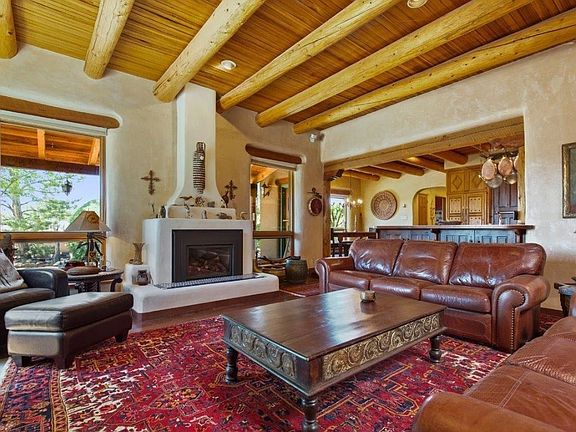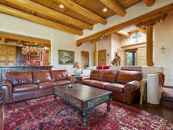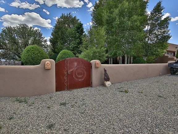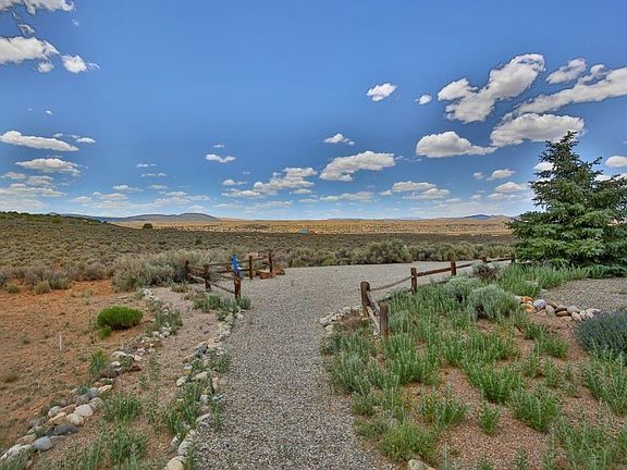 LIVE LARGE Whether you have a big family, a big family of friends, big dogs and/or horses this 3BR/2.5BA/2CG 2,139 sq. ft. main house with 2BR/2BA/1CP, 1,239 guesthouse and barn on 20 fenced acres (2 fenced 10 ac. lots) provides a stunning setting to live the good life now. The expansiveness of the 20 acres will surprise you. The peace and quiet are palpable and the panoramic views in every direction nurture the spirit. The site is an oasis amidst high desert beauty and the established landscaping and outdoor portals and patios provide shade and places to read a book, raise a glass, or just relax. You'll be impressed with the 5 custom iron gates by Although a house and guesthouse, both qualify as "homes" and the construction, by respected builder Don Pennington, in both shout quality and attention to detail. Upon entering the main house, you'll see the marble sculpture that's a part of the wall defining the welcoming living room complete with fireplace, high ceilings with vigas and split wide plank wood floors and diamond finish hand troweled plaster. The living room opens to the dining room with its wall of windows and the incredible kitchen. Remodeled and upgraded, the "cooks" kitchen boasts custom detailed cabinetry by Steve Ninneman. and lots of it, honed sanstone & copper, plus a pantry. You might even get inspired doing laundry in the bright, cheerful laundry w/sink. The large portal off the side is ideal for entertaining or sit under the aspens in the walled yard and sip a cool one with friends. Enjoy the corner fireplace in the winter and the big mountain views every day from the primary bedroom which also has a private patio. One side of the 2-car garage is now repurposed as a home gym. Next door, the guest house is equally attractive and boasts awe inspiring mountain views, a large fully equipped kitchen, 2 bedroom, 2 baths plus laundry, and an attached carport. The mountains loom large from the big windows in the living room with fireplace. Separated from the main house, it has its own private portal in back for lazing in the afternoon or linking up with friends for a bbq. Want more? The barn has water, electric and a tack room. There is a bridal bath around the property or leave the trailer at home and ride for miles, and miles and explore the Rio Grande Nat'l Monument taking you to the river Don't have horses? What about a workshop or studio? Don't need 20 ac.? Lots are split and lot to E has no structures. Located in Arroyo Hondo in River View Acres where most lots are 10 ac. you have easy access to roads for walking, riding bikes, or your horse and it's only 20 min. to town, 20-25 to USFS & Taos Ski Valley. This is a well-maintained property and the pumice construction with its high insulation value and eco-friendly composition will keep you warmer in the Winter and cooler in the Summer than most traditional building types. Solar hot water is a plus. Landscaping on drip. Driveway, road, and parking in good shape. Isn't it time to slow down and enjoy the good life?