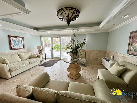 Located on Holiday Isle in Destin in the gated community of Sun King Towers this stunning 2 bedroom, 2 bathroom 6th-floor unit offers a 2 parking spaces. The interior features attractive decor and is fully furnished. As you enter the unit you are greeted by the spectacular full kitchen which boasts ample cabinet space, stainless appliances, and a breakfast bar that overlooks the spacious living room and dining space which features plenty of natural light that streams in from the balcony with custom shutters. The roomy primary suite is a dream come true with a walk-in closet and a tiled shower. Another good-sized bedroom with two beds and three closets, an additional full bathroom with tub/shower combo, and a laundry area with a washer and dryer included "as-is" complete the interior layout of this magnificent property. Outside you will have two private balconies perfect for enjoying your morning coffee or relaxing while you take in the sunset. You will enjoy many community amenities such as a clubhouse, fitness center, fishing, picnic and grill area, harbor-front pool, dock, nearby beach access, and water taxi availability. You do not want to miss the chance to call this beautifully furnished unit home!