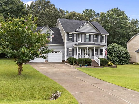 Tucked away on a quiet 0.42-acre lot in desirable Lee Forest, this expansive home offers a flexible floor plan ideal for today's lifestyle—all just minutes from I-40 and about 20 minutes from downtown Raleigh. Step onto the charming front porch or unwind on the two-tiered rear deck overlooking a private, tree-lined backyard—perfect for summer evenings and weekend gatherings. Inside, enjoy 9-foot ceilings on the main level and a thoughtfully designed layout featuring a dedicated first-floor office, ideal for working from home. The first floor also offers a full bath giving even more flexibility. The kitchen is a chef's delight with 42-inch cabinetry, stainless steel appliances, built-in microwave, and open views of the cozy breakfast nook and spacious family room—perfect for entertaining or everyday living. Upstairs, the generous primary suite offers a peaceful retreat with a walk-in closet and an ensuite bath complete with a double vanity, jetted tub, and separate shower. Three oversized secondary bedrooms and a large bonus room provide ample space for guests, hobbies, or a playroom. Additional highlights include a 2-car garage, outdoor storage shed, and a serene backyard that backs up to a natural wooded area for extra privacy. This home combines comfort, convenience, and charm—don't miss your chance to make it yours! New roof 2022, water heater 2024.