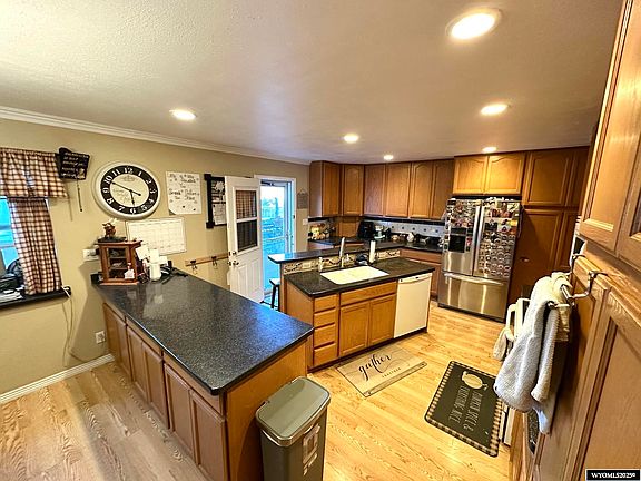 This charming 6-bedroom home is perfectly situated on a large corner lot, offering sweeping views and direct access to the adjacent park. Step inside to discover a spacious and thoughtfully designed floor plan, featuring a primary suite complete with an ensuite bathroom. With six total bedrooms, there’s plenty of room for all your needs. The bright and airy living areas are filled with natural light and offer seamless flow for entertaining or everyday living. Enjoy stunning views from multiple rooms, a well-appointed kitchen, and ample indoor and outdoor space to relax or host gatherings. Outside, the beautifully landscaped yard provides both privacy and open space—giving you the feeling of even more room to roam. Don’t miss the opportunity to own this exceptional property in a sought-after location. A rare find that blends comfort, convenience, and natural beauty. Call Lyndsey Hanks with RE/MAX Big Country for your showing. 307.707.4555