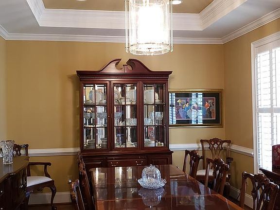 RECENT SUBSTANTIAL PRICE REDUCTION! This is an exquisite design and custom-built home on a one-and one-half acre heavily wooded lot at the end of an isolated street. A winding 400 Ft. driveway leads to the entrance of the home. The home has a 3416 square feet of living space on one level. All floors are hardwoods except bath and utility rooms. The home has three bedrooms on one level. A fourth bedroom is possible depending on the preferred usage of the space. All bedrooms have tray ceilings with crown molding and remote-control fans. Also, a beautiful office with an intricate coffered ceiling can be used as another bedroom or special needs if desired. The master bedroom offers two large walk-in closets. The remaining bedrooms have full baths and large closets. A half bath for guest usage is located with two entrances off the office or connecting hall. A large great room with an elegant light from the tray ceiling accentuates a fireplace with remote control lighted gas logs. Custom shelving borders each side of the fireplace. A sunroom with wrap around windows and a fireplace with designer logs blends nicely with a comfortable atmosphere for reading or TV. The kitchen offers Granite countertops, Stainless Steel Appliances, and Custom Cabinets provide generous storage space in the kitchen. A large opening from the kitchen to the great room provides a convenient bar for eating meals in a cozy environment. An extension from the kitchen accesses a small breakfast nook for two. A wet bar, a custom-built wine rack that holds 39 bottles of wine, an under-counter wine cooler and separate ice maker are adjacent to the breakfast nook. A food panty opens directly from the kitchen. All counter space is fitted with electrically wired under-counter lights. A long hall from the kitchen leads to the other two bedrooms at the opposite end of the house. At the end of the hall is a laundry room with plentiful cabinet and storage space, appliances, and a sink. An infrared sauna is also located in the laundry room The house has an oversized two car garage with an entrance to a hall that connects the two bedrooms and laundry room. Off the garage entrance is a large pantry and storage area. An entrance to the unfinished second level stairs opens to an unfinished bonus room from the hall. The bonus room is framed and stubbed if finishing is ever desired. Storage space abounds in this upper area. A spacious dining room accommodates an eight-place Dining Table, Buffet, China Cabinet, Block chest and a beautiful chandelier. In addition to the living space, the home is encased with a large front and back porch. A sidewalk from the driveway leads to a large front porch measuring 45 x14. The porch has four ceiling fans that hang from a tongue and grooved pine ceiling. The back porch is screened and measures 35 x10. The screened porch has three remote controlled outdoor fans that are hung from a tongue and grooved pine ceiling. An additional 12 x 12 sunporch is located just off the screened porch. Looking from the back porch one sees a 27 x 16 pavilion covered by a high-quality tin roof. The pavilion was designed for the placement of a future outdoor kitchen. The pavilion has remoted ceiling fans and a source of electricity for other electrical needs. A six-person spa frog hot tub lies just outside the screened porch. A one hundred eighty-foot white privacy fence follows the property line in the back area. This gorgeous home has been immaculately maintained.