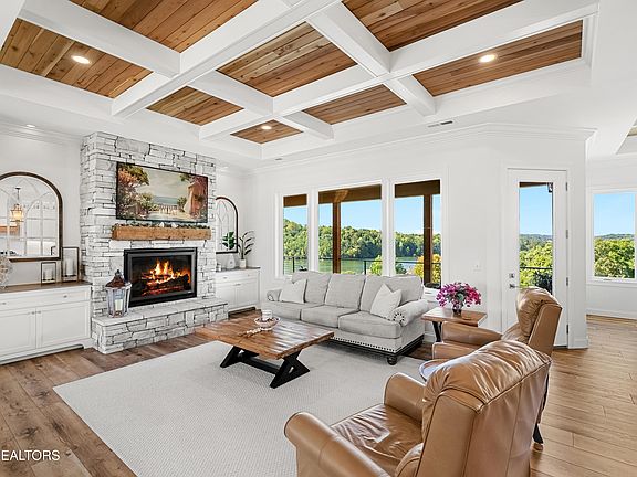 Perched high on a hill overlooking Tellico Lake, this custom-built home offers unparalleled lake views and luxurious living. Recently constructed with meticulous attention to detail, this residence boasts high-end finishes throughout, making it truly move-in ready. The abundance of windows floods the interior with natural light, ensuring every corner of the home captures the picturesque lake vistas. Step out onto the upper covered deck to savor a drink while marveling at the expansive views, or retreat to the spacious lower level perfect for entertaining guests. The kitchen features an open floor plan, seamlessly integrating with the living and dining areas, perfect for modern living and entertaining. The master suite is a sanctuary of comfort, featuring a spacious bathroom with a large walk-in closet. Within a short walk, you can keep your boat in a covered boat slip. Rarity Bay is a guard-gated community featuring a restaurant, golf course, tennis, pickleball, and gym, offering an active lifestyle with numerous clubs and activities.