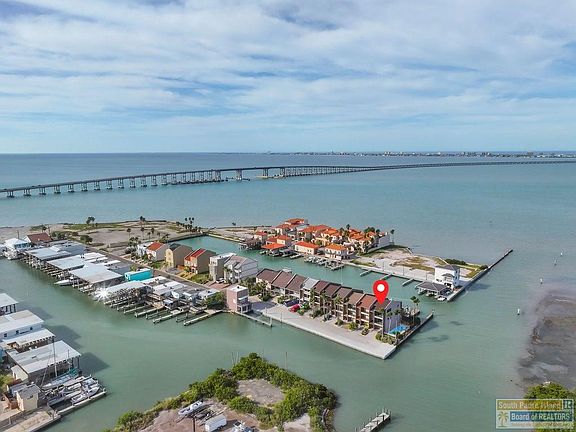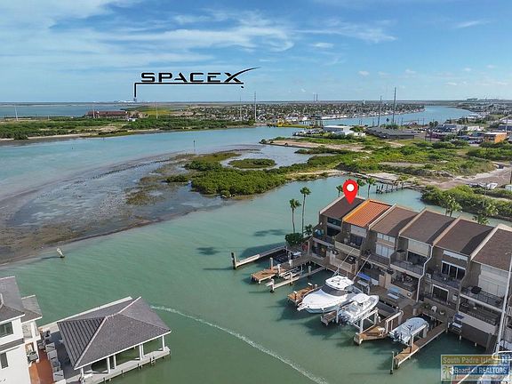 Waterfront paradise w/ everything you need for coastal living! This 1,820 sq ft home features 2 bedrooms, 2.5 baths, and a large ground floor bonus room that can serve as a 3rd bedroom or office. Enjoy stunning views of Laguna Madre, South Padre Island, Mexiquita Flats, SpaceX, intracoastal canal, ship channel, sunrises & sunsets all from 3 private balconies, covered porch, or the private docks. The home includes 2 deep water boat slips—1 with a lift—perfect for easy access to the bay & Gulf. Cool off in your private pool & relax in the spacious outdoor area. The 1-car garage offers room for a vehicle, fishing gear & water toys, w/ additional parking available. Inside, open living areas are filled w/ natural light & coastal charm. Located in a deep water marina w/ low HOA fees, this home offers privacy, convenience, and an 270 degrees of waterfront. Whether you're into SpaceX rocket launches, boating, fishing, or just enjoying the view, this property delivers it all.