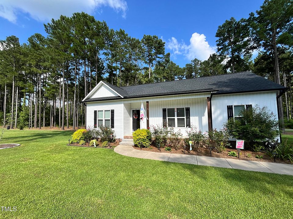 As soon as you arrive at this beautiful ranch home, nestled among the mature trees at the end of a quiet cul-de-sac, you will feel right at home. The property features an expansive front, back, and side yard, all without restrictions! Step inside to be welcomed by vaulted ceilings and an open floor plan, complete with a spacious kitchen perfect for preparing your favorite meals. The dining area overlooks a bright and airy living room, making it ideal for entertaining. This home offers main floor living at its best, featuring a split ranch layout. On one side, you'll find the primary bedroom and a generous primary bath, while the other side includes two well-sized bedrooms and a full bathroom. Don't miss the stunning back deck that overlooks the wooded area—it's a must-see! The fenced backyard provides a great space for relaxation, and the additional large side yard is perfect for outdoor activities and enjoyment.