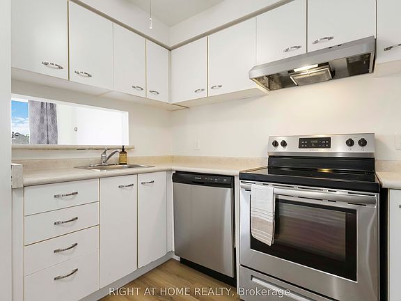 This stunning top-floor 1-bedroom condo is a rare find, with only three units of its kind in the building. Freshly painted with new flooring throughout, it boasts a bright, open-concept layout with large windows, stainless steel appliances, a cozy fireplace, and a private balcony. The master bedroom features a 4-piece ensuite, and the unit includes convenient ensuite laundry. With renovations to the lobby and hallways almost complete, plus fantastic amenities like an indoor pool, sauna, gym, tennis court, and more, this comples offers everything you need. Located just steps from the lake, waterfront trails, GO transit, shopping, and schools, its the perfect mix of comfort and convenience. Plus, the hot water tank is owned no rental fees!