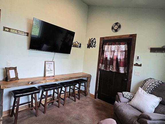 Rustic decorPrivate front porchQueen bedShared acreBlack bear wall muralFlat screen smart tvFull kitchen