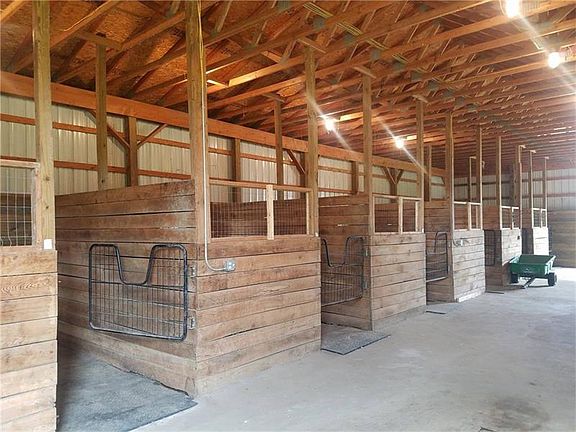 Bring your custom home builder! This land is very flat and is awaiting your dream home, horses or farm!! Public water is available at the road! Large 9 stall barn build 9 years ago has electricity, well water, and a cement floor. Property also features a Jog track, 5 run-in sheds, 2 garages with 2 large storage areas. This property is CLEAN AND GREEN!