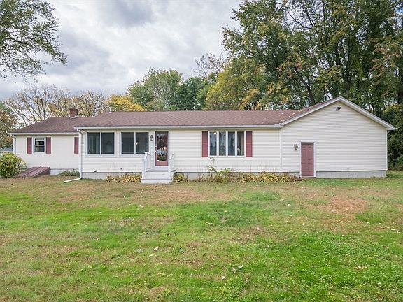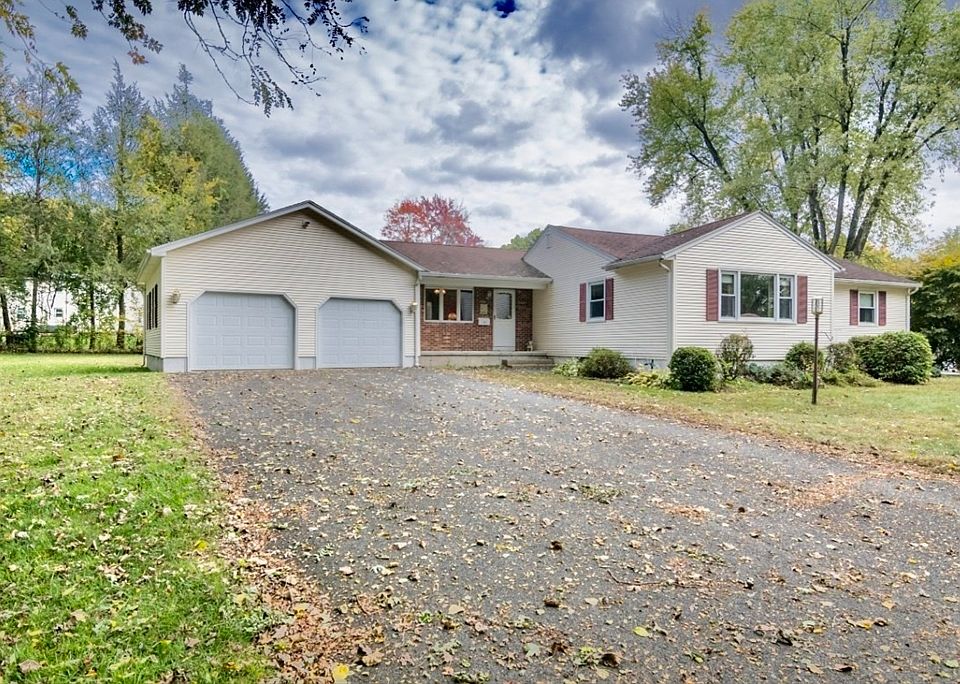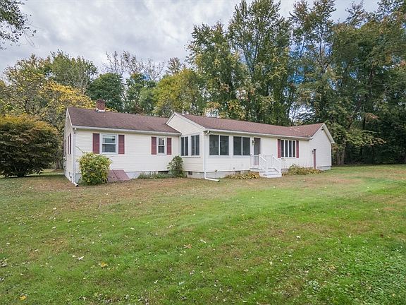 Fantastic location is the host for this spacious ranch at end of no-through street. As you enter, you are greeted by a very large family room addition with cathedral ceilings that opens to the eat-in kitchen. An atrium door leads you to a bright sun room with vaulted ceiling & newer windows- the perfect space to sit and relax.The large living room has wood floors and an expansive picture window. All three bedrooms are generously sized with double closets and feature wood floors - one has carpet with wood underneath (APO). The lower level has a finished rec room and built-in bar. There is plenty of room to entertain inside & out - sitting on almost a half acre abutting conservation land. The homes double lot offers wood views, a tranquil setting yet close to area amenities. Additional features include a 2 car garage & freshly power washed vinyl siding. This home has been nicely maintained by the same family for many years and is ready for its next chapter. Don't delay!