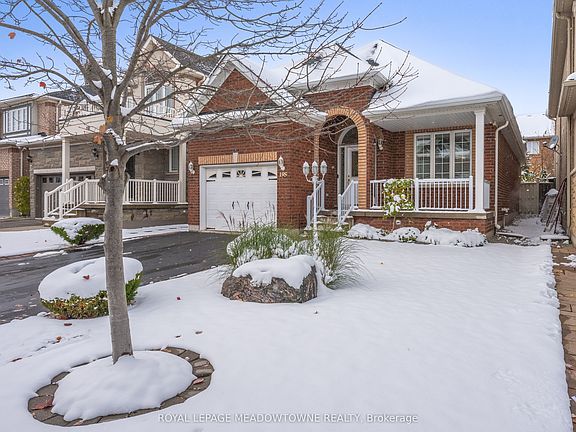 Rare Bungalow in Sought-After Willmott Neighbourhood This charming 2-bedroom, 2-bathroom bungalow offers a rare opportunity to enjoy one-level living in the highly desired Willmott community. Ideally located steps from transit, the hospital, Milton Sports Centre, and beautiful parks, this home blends comfort, convenience, and style.A double-wide driveway and single-car garage provide ample parking. The covered front porch welcomes you into the home and sets the tone for the warmth found throughout. Inside, the formal living and dining area feature gleaming hardwood floors, California shutters, and an abundance of natural light. The spacious kitchen offers tile flooring, stainless steel appliances, a sit-up breakfast bar with pendant lighting, tile backsplash, pot lighting, and plenty of cabinetry. The kitchen overlooks the cozy family room, complete with a corner gas fireplace, hardwood flooring, and a walkout to the private backyard.Step outside to the beautifully landscaped patio and serene yard surrounded by mature gardens and enhanced with an irrigation system. The primary bedroom features a large closet, California shutters, and a 4-piece ensuite with an expansive double vanity and glass-enclosed shower. The second bedroom is generous in size with hardwood flooring and a large closet. A main 4-piece bathroom with a shower/tub combo, a convenient laundry room, and direct access to the garage complete this level.The unfinished basement offers excellent ceiling height and an open layout, providing endless opportunities to create additional living space tailored to your needs.