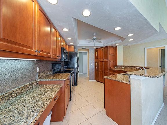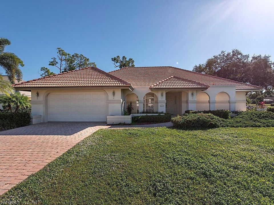 H.15423 - Enter this lovely home and look through the living room out to the pool, golf course & lake. The view is fantastic. The living room has a tiled entry with disappearing sliders, a high ceiling & a formal dining room. The kitchen has been remodeled with granite counter tops, new wood cabinets with pull out shelves, lots of counter space and a beautiful sparkling back-splash. The kitchen is open into the family room and also contains a separate breakfast area with corner sliders to enjoy your pool & golf course views. The family room is adorned with beautiful wood floors, high ceilings and plantation shutters. The master bedroom also has wood floors as do the guest bedrooms. The master has a large walk-in closet and sliders leading to the lanai. The master bath contains a separate tub & shower w/new doors and a vanity w/dual sinks, new mirrors and lighting. There is an extra-large laundry room with sink and extra cabinets. The garage features lots of cabinets to keep all of your stuff nice and neat. Lastly, the covered lanai has a large sitting area and is finished with brick pavers. This home is in a terrific neighborhood & is close to downtown Naples and beautiful beaches.