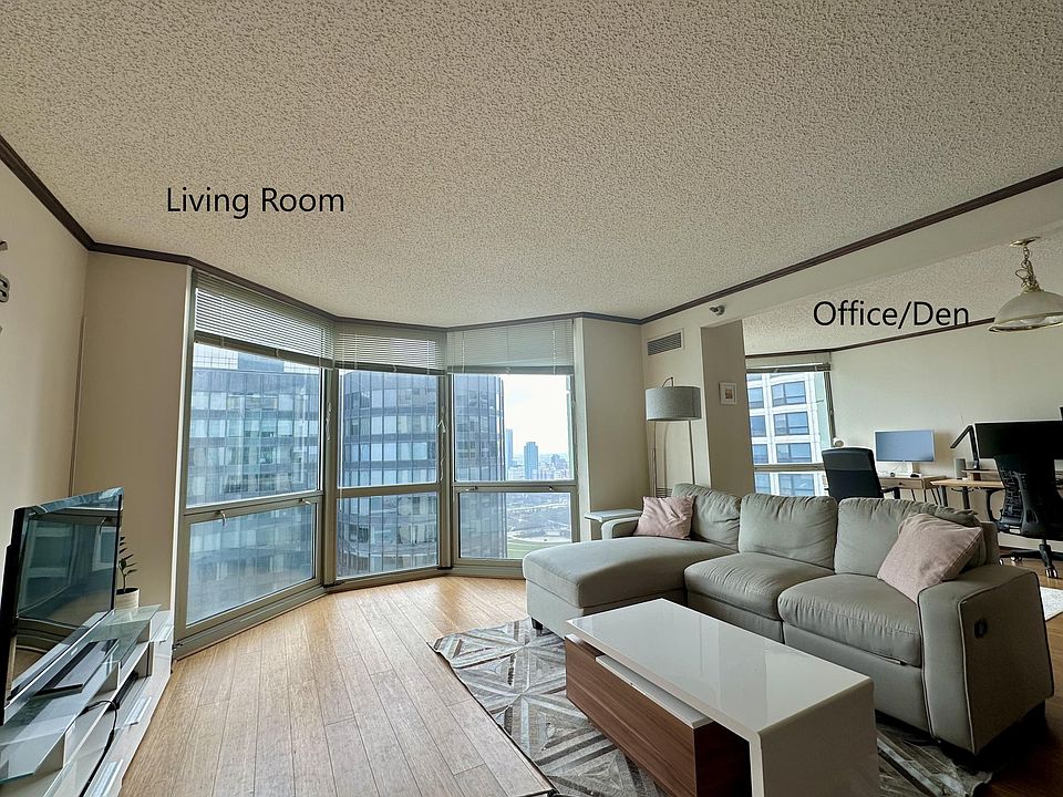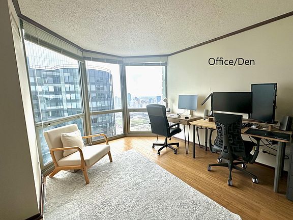 Located in Lakeshore East, this 2Bed + Office, 2 Bath offers a beautiful South-Facing view of the lake and city with views of Millennium Park. Conveniently located with easy access to Lakeshore Dr. as well as 290/90 highways via Lower Wacker, the Parkshore building is located right next to Lakeshore East Park which hosts a grocery stores, restaurants, a playground and even a dog park. In-building parking space included.