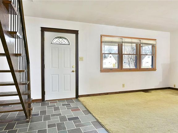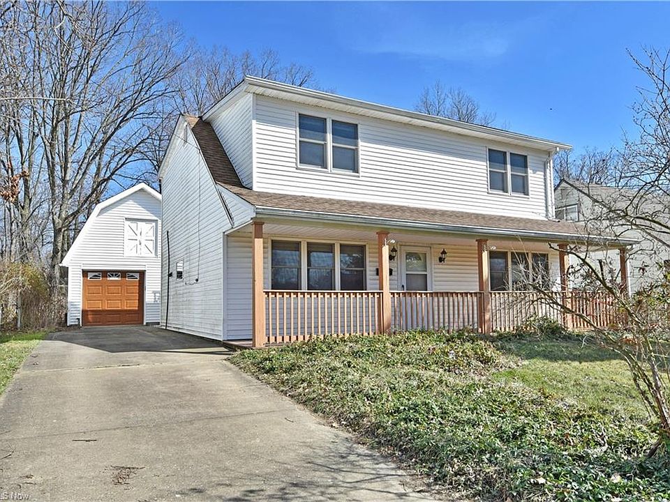 Enjoy up to five bedrooms, two FULL baths plus a 23x15 two-story detached garage with this surprisingly spacious Niles home! The impressive residence begins with its concrete driveway leading to a relaxing covered front porch and a custom garage door that boasts plenty of curb appeal. Through the front door, a slate-tiled foyer runs along a stylish staircase, spilling into the main hall as the large carpeted living room basks in natural light. A large serving window peers into the nearby kitchen where custom wood cabinetry wraps around the tiled countertops, appliances, and slate flooring. Hidden utilities line the hallway as you make your way into a robust family room. Wood panel walls join built-in cabinets and a brick mantle, set before a lavish first-floor bath with a handicap accessible shower. Around the corner, first-floor laundry doubles as an easy mudroom with its access to the backyard. Upstairs, a long hallway divides the multitude of bedrooms as colorful carpets mark each of the spacious bedrooms. The sizeable master bedroom offers private closet space and views of the backyard. Three additional bedrooms are nicely sized and offer great closet space. The cozy fifth bedroom could also be a home office. A second full bath can be found mid hall with updated tile flooring, sizeable vanity, and tub/shower combo. The park-like backyard completes the package with charming brickwork and a concrete slab. Updates: furnace/AC 2005, newer roof, garage door and opener 2013.