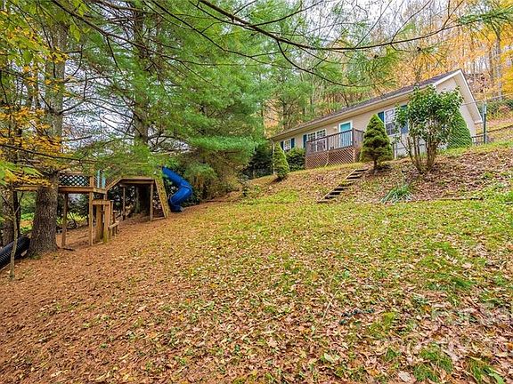 One level ranch just 15 minutes from Boone! Open living room with pass thru window into large kitchen/dining area, storm door & doggie door; kitchen boasts lots of cabinets, including pantry cabinet, tile backsplash & all appliances convey; full laundry room with cabinets (washer/dryer to convey); side door leads to side porch/driveway; master suite has walk in closet and full private bathroom; 2 spare bedrooms both with ceiling fans; full hall bathroom has large vanity and tile top surround tub/shower; front porch; LED lighting & Alexa lightbulbs; fenced yard; playset/treehouse & slide for kids; outbuilding and more!