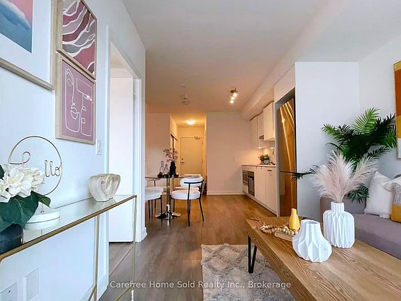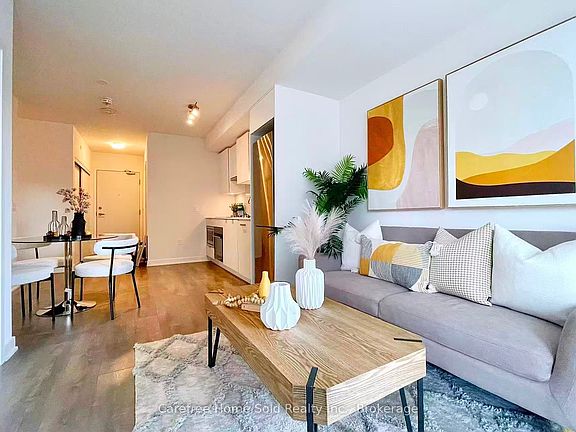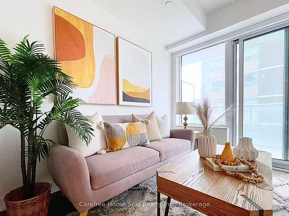 Modern 1-bedroom+den, 2 full bath condo in the heart of Midtown Toronto offers resort-style living and a highly flexible layout that can easily function as two bedrooms, each with its own bathroom. Built in 2022 by an award-winning developer, Pemberton, CityLights on Broadway boasts more than 18,000sqft of indoor amenities and 10,000sqft of outdoor space. The suites' open concept design combines kitchen and living spaces seamlessly over 600 sq ft of interior space and extends outward to a 100 sq ft south-facing balcony. A modern kitchen with stone counters, integrated appliances, sleek cabinetry flows into the living area, which opens onto the balcony, a private city oasis. 9 ft ceilings and a wall of windows bathe the home in natural light, while the bedroom features a large sliding closet and a luxurious 4-pc ensuite bathroom. Residents enjoy access to the Broadway Club, an amenity space that includes two gyms, a yoga studio, an indoor basketball and badminton court, media rooms and a music room. Outdoor amenities resemble a resort, with two swimming pools, a rooftop terrace, barbecue areas, fire pit lounges and an amphitheatre. A 24-hr concierge, visitor parking and guest suites provide convenience and security. Maintenance fees cover common elements, building insurance and water, ensuring predictable monthly costs. The location is just a 7-min walk from Eglinton subway station, and the forthcoming Crosstown LRT promises even easier commuting. Around the corner are diverse dining options, from Italian at LaVecchia and Japanese fare at Kasa Moto to specialty coffee at Tertulia Espresso Bar and local spots serving soup dumplings and pan-fried buns. The condo is close to highly regarded schools, including North Toronto CI, and it offers easy access to parks such as Redpath Parkette and Eglinton Park. With a Walk Score of 91 and a transit score of 88, Mount Pleasant West is a diverse, lively neighbourhood where car-free living is entirely feasible.