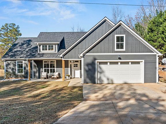 Welcome to 195 Rhonda Rd in Campobello—your modern Craftsman retreat on 1.31 peaceful acres. Set on a quiet country road yet just minutes from Hwy 26, this home offers the perfect blend of privacy and convenience with easy access to Landrum, Spartanburg, Asheville, Greer, Greenville, and surrounding towns. Step inside to an open living area with cathedral ceilings and a cozy fireplace, flowing into a spacious kitchen with quartz countertops, a large pantry, and abundant cabinetry. The split floor plan gives the primary suite its own wing, featuring a generous bedroom, dual-sink vanity, large tiled shower, private water closet, and walk-in closet. Two additional bedrooms share a beautifully finished full bath. An upstairs bonus room offers great flexibility for a home office, playroom, or guest space. Outside, the extended driveway provides room to add a detached garage, workshop, or RV/boat parking. With 1.31 acres, you’ll have plenty of space for a garden, outdoor living, or even an inground pool. Mature trees line the drive for a picturesque sense of arrival. If you’re looking for modern style, elbow room, and an easy commute—this home has it all.