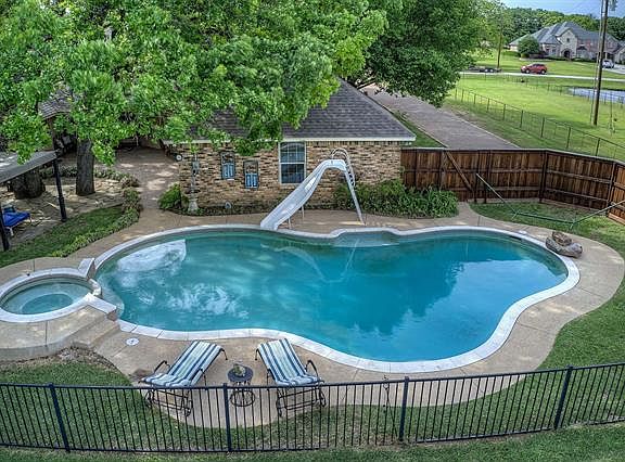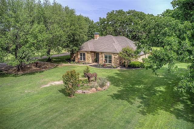 Beautiful home on 2 acres with gorgeous mature oak trees, a 5 stall horse stable and gunite pool with spa. This 2500 sq feet 3 bedroom 2.5 bath home boasts two living areas that open into the backyard oasis, wet bar and more. The remodeled kitchen boasts granite, stainless steel appliances, oversized island, double oven, breakfast bar, skylight and more. Don't miss the vaulted tray ceilings and large wood burning fireplace in the living room and many additional custom finishes in the home. Robinson Road is a family oriented private dead end road with no thru traffic. It is the perfect property to raise kids, chickens, livestock, horses and more. A quick drive into Dallas!