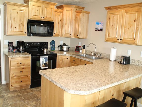 Kitchen includes slow cooker, toaster, microwave, stove, oven, refrigerator with ice Maker, coffee Maker, coffee mugs, coffee grinder, beans coffee filters and non-dairy creamer, broom, dustpan, dish towels, pot holders, dish washer cloth, pasta strainer, garbage bags, dishes and utensils (flatware, dinnerware, mixing bowls, knife prep set, cookware, baking ware, measuring cups & spoons, corkscrew, can opener, 8 oz glasses, cheese grater, vegetable peeler, paper towels, and board games).