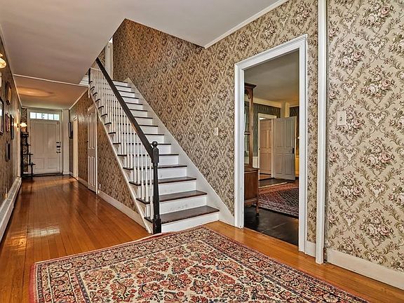 A stately and grand home offering 4,000 sq. ft of living space, 16 rooms, 7 Bedrooms, 3 full Bathrooms, 8 Fireplaces and a very versatile floor plan this is not to be missed. The grand entrance leads the way to a large living spaces with high ceilings as well as a 1st floor Bedroom. A butlers pantry leads to another wing of the home that includes a large Kitchen w/ center island, granite, beehive oven and a breakfast room as well as several utility/work rooms. The main section of the 2nd floor offers 4 large Bedrooms w/ wood flooring. The wing above the Kitchen boasts 3 additional rooms. Outside you will find a charming front porch, large screened porch, a 2 car garage, stone walls, beautiful acreage and a detached 3 room brick building with basement, a former law office. Enjoy the new roof, updated gas heating system & updated electric service. Known as Elmshade on the National Register of Historic Homes. Zoned for business.... Opportunities are endless....