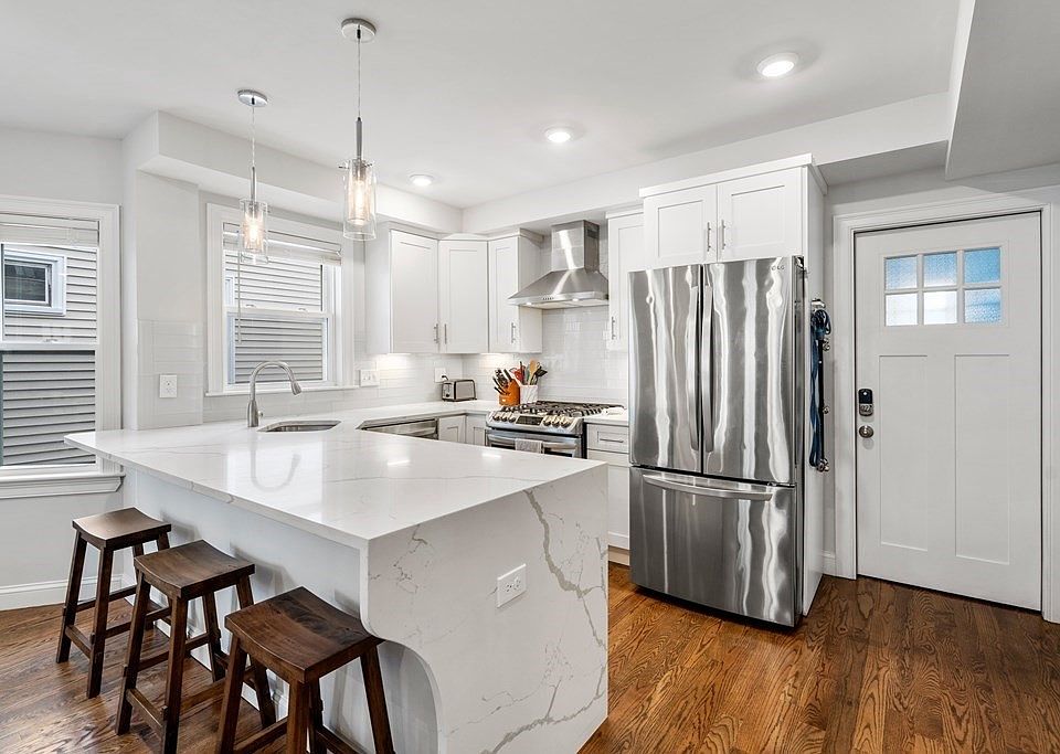 Move right in to your new 2020 renovated Medford dream home! This gorgeous light-filled 3-4 bed / 3 bath condo offers top of the line LG stainless steel appliances, quartz kitchen countertops, central A/C, main floor laundry, guest bed w/en suite bath (stay as little or as long as you desire). Spring is coming & no better time to enjoy entertaining outside in the fenced in backyard which also includes recently installed turf and a stone paver patio, or enjoy your morning cup of coffee or evening cocktail from one of three private decks. Whether you work remotely or commute, this location (Glenwood Neighborhood) can't be beat. Public transportation options abound including orange & green line "T" stations (Malden Center, West Medford) & bus lines including 101/100 & 95. Did we mention restaurants? Fit-for foodie gems include nearby Fioritaly Trattoria and Nappi's, lots of nearby shopping (Assembly Row and Station Landing) AND off-street parking to boot! OH Sat 12-1 & Sun 12-1:30pm.