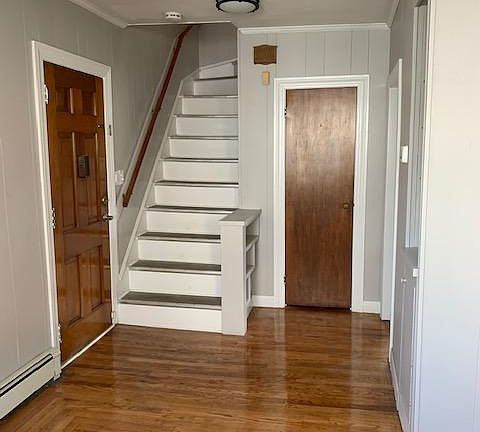 Recently renovated. Bathroom and kitchen has newly installed ceramic tile flooring in both. Hardwood floors just been refinished, new heating system, all new windows throughout, entire interior just been freshly painted. Owner pays for water. Renter is responsible for gas and electric. First months rent, last months and security deposit are due at signing. No pets allowed.
