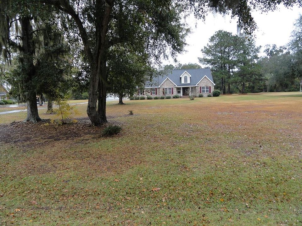 Stunning freshly painted 3 bedroom 2 bath Ranch Style Home that sits on 1.12 Acres, beautiful landscaping, the rear face's a lagoon leading in to a large pond. It has a front porch, a foyer entry, a hallway that leads to the formal dining room, bedrooms 2 and 3, all with hardwood flooring, the formal dining room has a octagon ceiling, the living room has a fireplace, a vaulted ceiling, lot of crown molding, a large eat-in-kitchen with ceramic tile flooring side by side refrigerator, smooth top stove and white cabinets. All bedrooms are carpeted, the master bedroom has a tray ceiling, w/double vanity separate shower, separate toilet, a oversize jetted tub, bedroom 2 has a tray ceiling, the hall bath has a double vanity, a bonus rm upstairs.