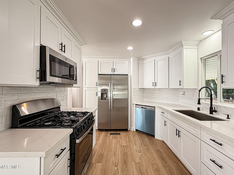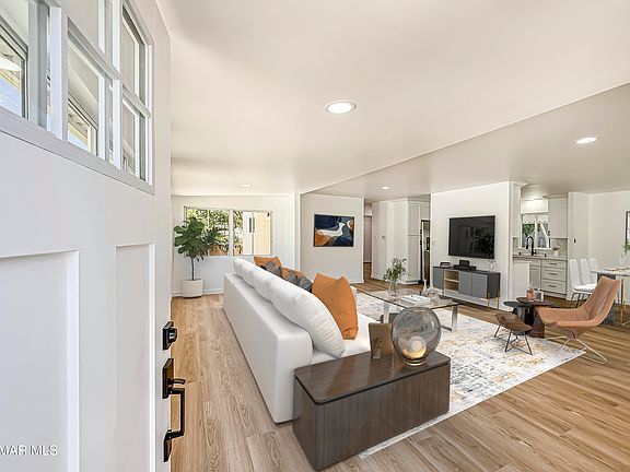 The closest you'll find to a brand new mobile home! (Plus no property tax!) Discover serene living in this beautifully renovated, completely turn-key 2-bedroom, 1-bathroom home nestled within the 55+ community of Friendly Village Simi Valley. TONS of natural light, this home has brand new drywall & paint, new recessed lighting throughout, new luxury vinyl flooring, a fully remodeled kitchen with all new stainless steel appliances, and a beautifully remodeled bathroom with a walk-in shower. Enjoy the brand new central heating and air conditioning system, all new plumbing, including a new water heater, all new electrical, and dual-pane windows. The home has also been recently refreshed with a resealed roof, exterior paint, and leveling. There's a covered driveway with tandem parking space for 2 included and the home sits on a HUGE lot with fruit trees at the end of the cul-de-sac. Residents of this community have access to a well-maintained community center featuring a clubhouse, pool, spa, putting green, dog run, library, gym, and more. Enjoy a convenient location with easy access to shopping, dining, parks, hiking trails, the Reagan library and the 118 Freeway. This is the perfect opportunity for 55+ individuals seeking a peaceful and comfortable lifestyle surrounded by stunning mountain scenery. Don't miss your opportunity to own this gem! Photos have been digitally staged.