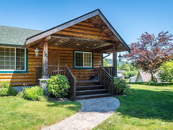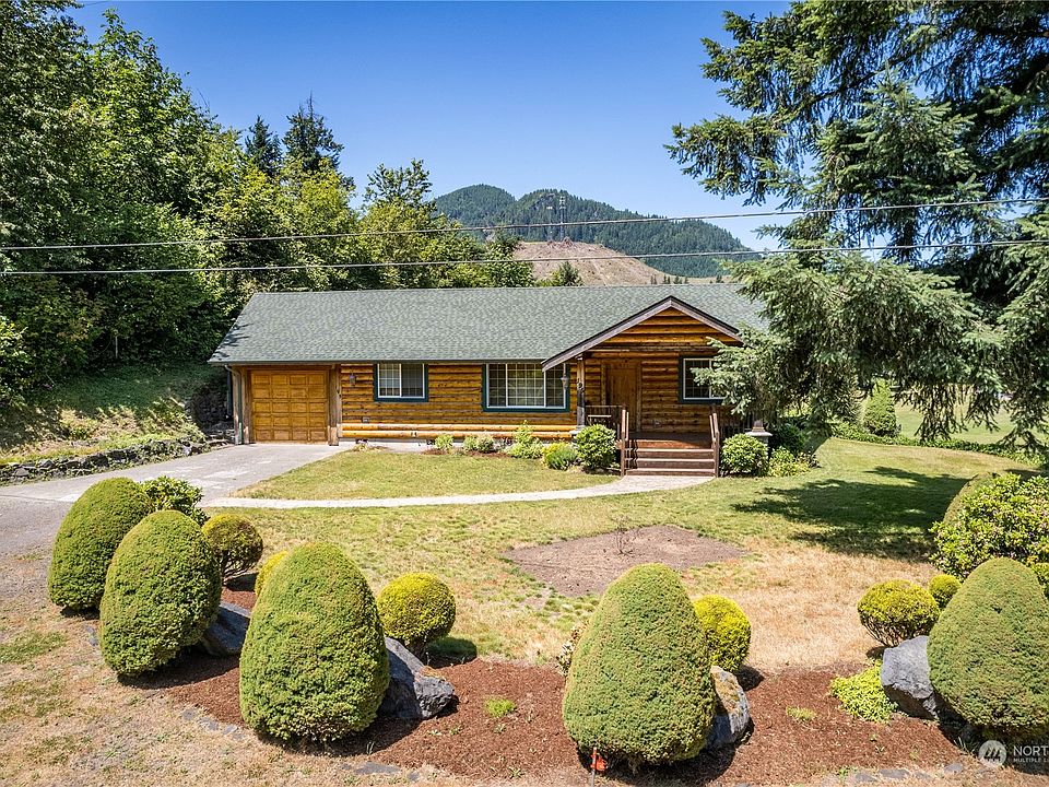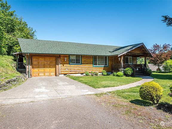 Beautifully maintained 3 bed, 1.75 bath Morton home boasts a well-kept log exterior, reflecting true pride of ownership. The house features a newer roof and the convenience of a tankless water heater. The home interior has newer laminate floors, windows and granite counters. The heated garage ensures comfort in all seasons, while the ductless mini-splits offer efficient heating and cooling throughout the home. The property includes two sheds both with electricity. The Tuff shed in the lower yard is well-equipped with water, and a sewer hookup, making it a versatile space for various needs. This home is perfect for relaxation and entertaining, with a welcoming front porch and a spacious back deck with a hot tub to enjoy the views and garden.