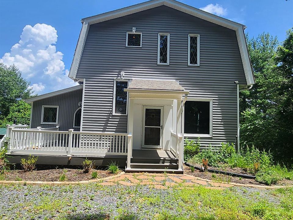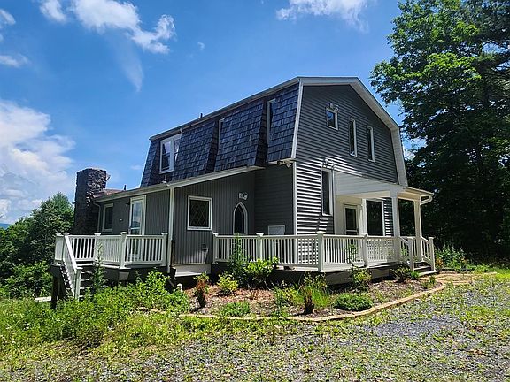 This striking Barn-style Dutch Colonial blends timeless charm with modern comfort. The open-concept first floor features a spacious kitchen with island, seamless flow into the living area and sunroom-perfect for everyday living or entertaining. Upstairs, the open primary suite offers vaulted ceilings, a private balcony and open bath for a true retreat. Two additional bedrooms and full bath in the walkout basement opens to a covered Lanai for relaxing or enjoying the mountain breeze. Other fun facts are that the house is also serviced by an outdoor furnace. There is a hand-turn doorbell and a ships porthole window on the front door. You will never lose power with the Generac generator.